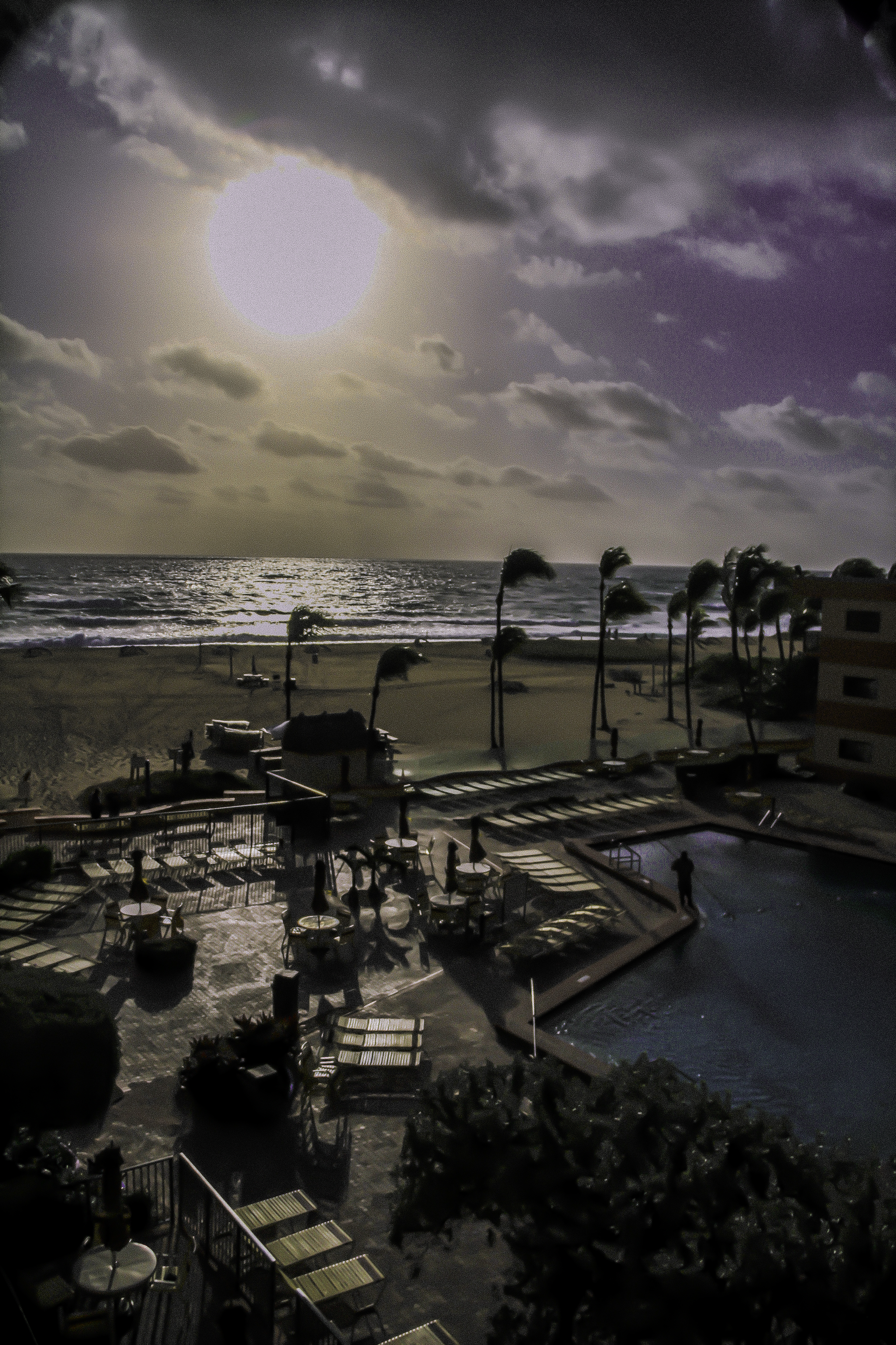 Here is a dawn shot of the maintenance man out cleaning and caring for the pool before any guests get up and out into the pool. His job is relentless and every night the elements conspire against him and toss sand, sand and more sand into his pool. Bravo Pool Man! You make vacations!